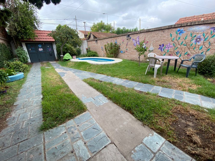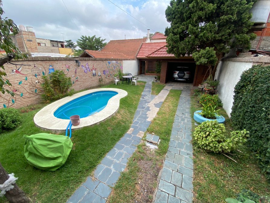 casa de 4 amb en EXCELENTE ESTADO. Amplio lote con pileta, quincho y terraza. Compuesta por entrada por pasillo, amplio living, cocina-comedor amueblado, 3 dormitorios, baño instalado c/ bañera, cuarto de guardado, parque c/ pileta y quincho c/ parrilla, cocina amueblada y baño auxiliar.